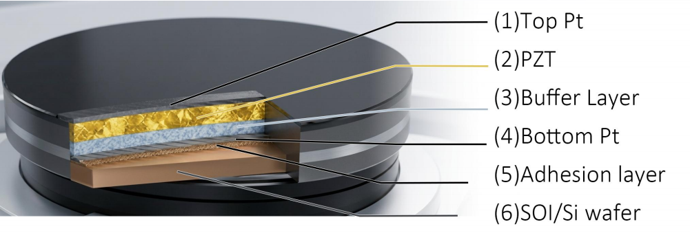 Integriteten til flerlagsstabelen er grunnleggende for ferroelektrisk ytelse. Våre wafere bruker en presisjonskonstruert stabel av metalliske elektroder og keramiske tynne filmer:
